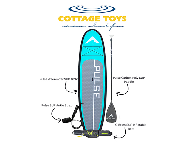 Includes 2 paddle boards, 2 paddles, 2 inflatable life jackets, and 2 leashes. Prize value $1,950, including taxes.